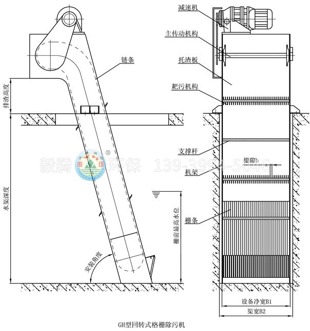 ?齒耙柵后下行,柵前上行撈渣,不會(huì)將柵渣帶入水下,撈渣徹底。